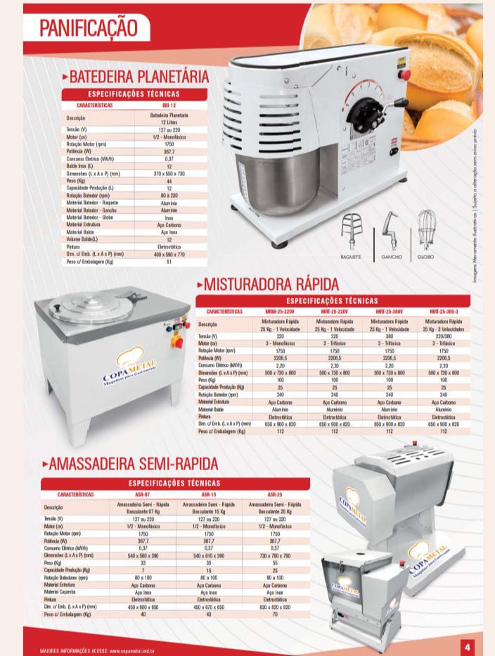 Batedeira Planetária / Misturadora Rápida / Amassadeira Semi-Rápida